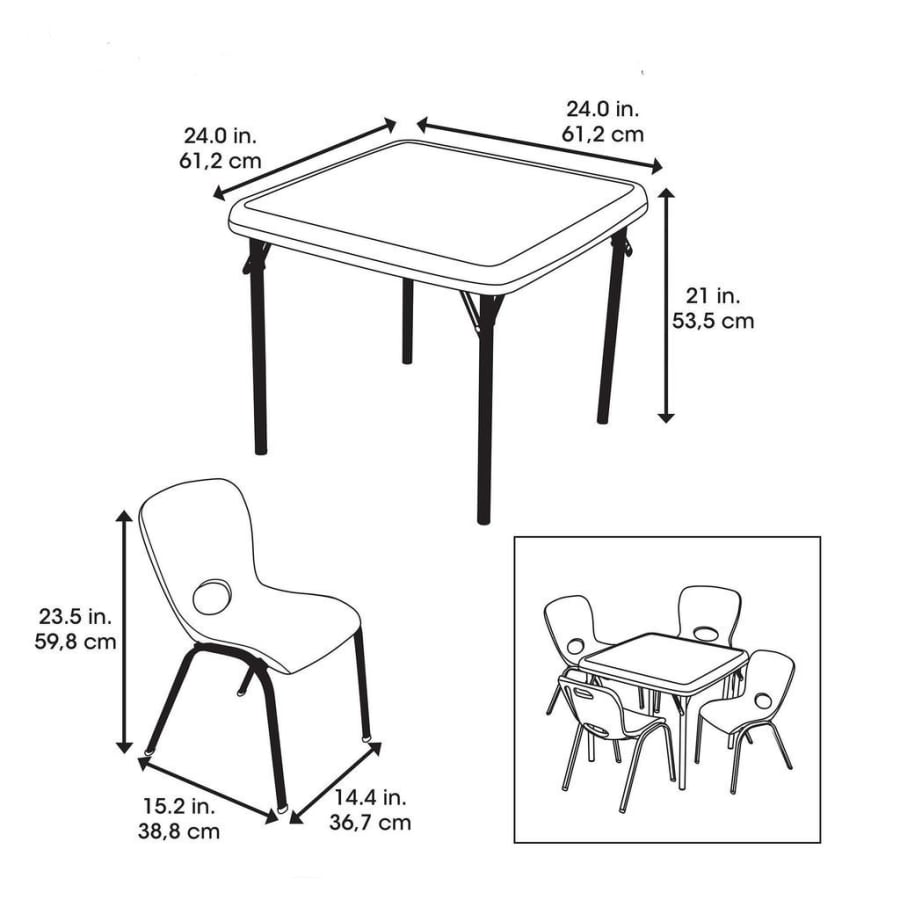Product Item: Lifetime kids table with 4 blue cheap chairs